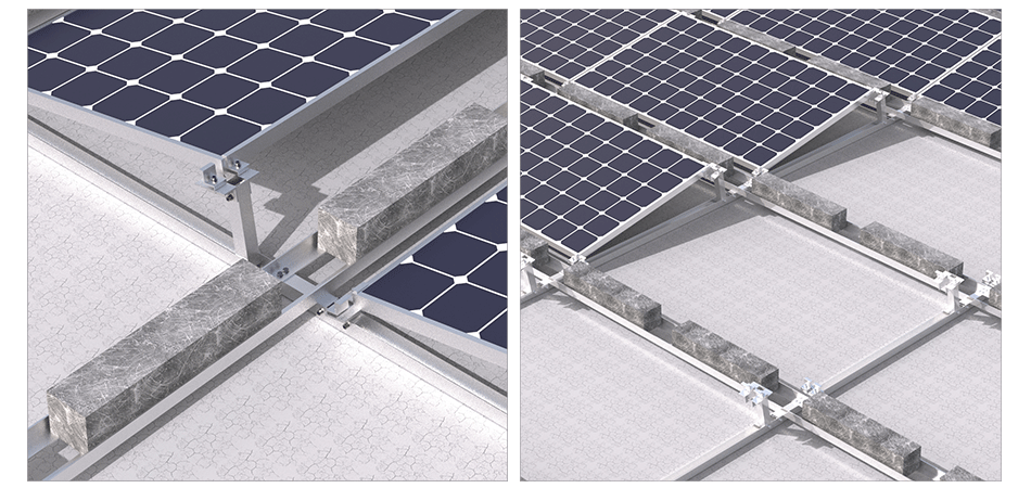 Il sistema di montaggio su tetto piatto con treppiede zavorrato è relativamente facile da installare e può essere eseguito rapidamente, il che può ridurre i tempi di installazione e i costi di manodopera. Il sistema di montaggio su tetto piano con treppiede zavorrato è una soluzione efficace ed efficiente per installazioni di pannelli solari su tetto piano che richiedono stabilità e sicurezza senza la necessità di penetrazione nel tetto.