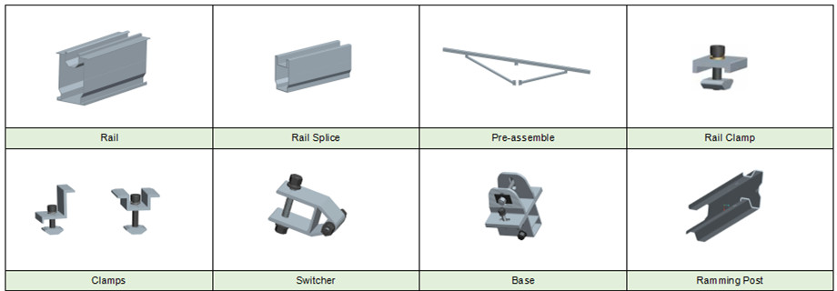il post c può essere impilato in il terreno 1 - 2 metri dalla macchina per pile rapidamente, quindi montareil pre - assemblato alluminio trave, il binario e morsetto, ecc.