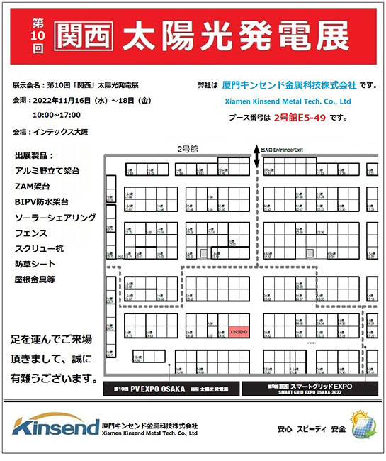 Kinsend sarà presentato al 10° Kansai Solar Power Show, che si terrà a intex, Osaka, dal 16 al 18 novembre 2022.