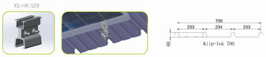 Il Kinsend Kliplok 700 morsetto da tetto sono progettati esclusivamente aiuta a montare il sistemi solarisu tetto. Il i morsetti sono progettati per catturare efficacemente le cuciture con facilità. i morsetti offrono un fissaggio sicuro senza penetrante nel tetto fogli, con massima stabilità e minimo peso.