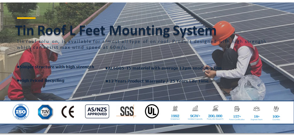 Solar PV Ganci per tetto in latta di montaggio in alluminio L Piedi ad alta intensità