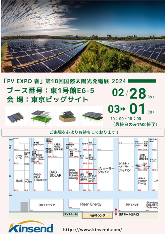 Sarebbe un grande piacere incontrarvi a Tokyo, in Giappone, nel nostro stand. Per consultazioni sulla cooperazione su progetti solari, non esitare a contattarci via e-mail: info@kinsend.com