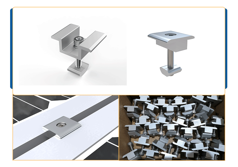 Il materiale principale è AL6005-T5 con film di anodizzazione medio di 12μm. Il design unico dei morsetti intermedi e finali viene utilizzato in diversi tipi di pannelli solari. La progettazione speciale del binario può rendere l'installazione più semplice e veloce. Le parti sono state preassemblate in fabbrica per risparmiare tempo di installazione.