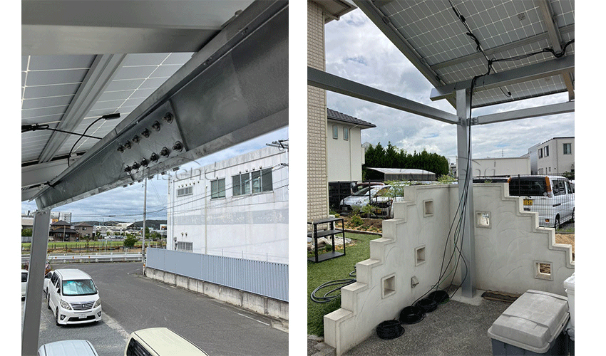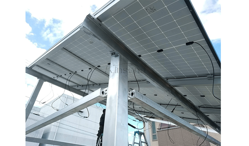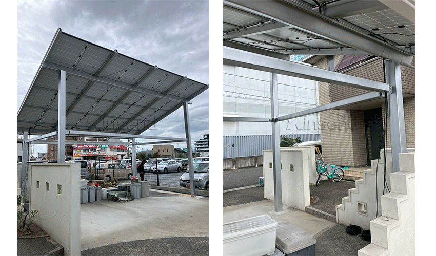 Il nuovo posto auto coperto solare impermeabile Kinsend è stato installato con successo in Giappone. La base viene fissata con bulloni incorporati, quindi il calcestruzzo viene irrigato e livellato. La staffa in acciaio al carbonio ad alta resistenza ha un'elevata stabilità e può supportare pannelli batteria di grandi dimensioni. Ha una buona resistenza sismica, resistenza al vento, resistenza alla pressione della neve e resistenza alla corrosione.