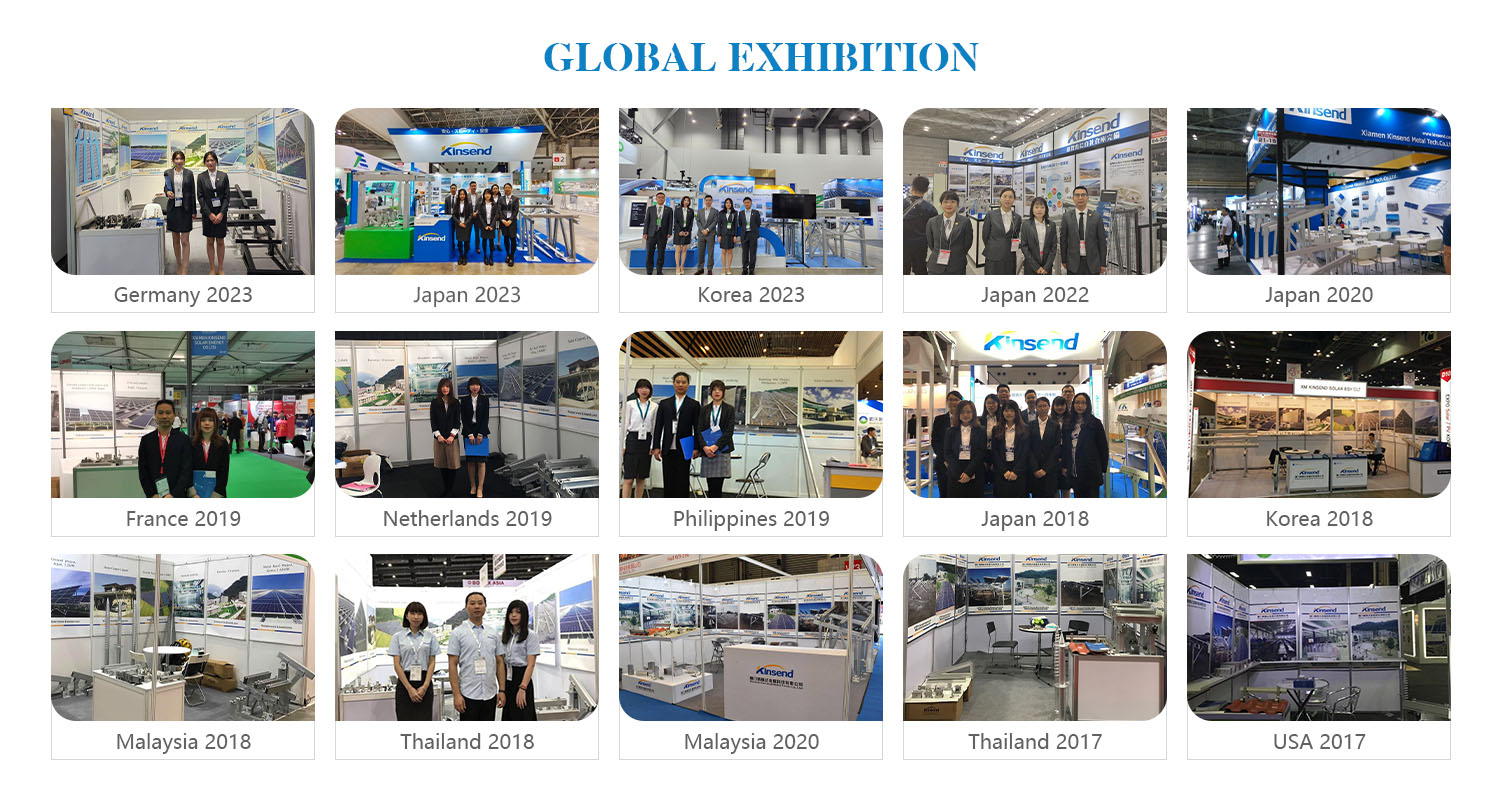 Kinsend offers solar PV mounting solutions supported by a veteran R&D team, which provides tailored efficient design as per customer’s budget and project conditions. It covers a range of products and services, including solar rooftop mounting system, solar ground mounting system, solar carport, solar farm,solar green house and ground screw as foundation.